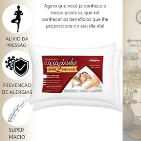 Desfrute de uma noite de sono tranquila com o Travesseiro Ortobom Casadinho. Este conjunto vem com duas peças de 45cm x 65cm, perfeitas para acomodar-se em sua cama com conforto e suporte. A microfibra peletizada e o tecido 100% poliéster oferecem uma sensação suave ao toque, enquanto o enchimento 100% poliéster com fibra siliconizada garante uma estrutura aconchegante e duradoura. Além disso, os travesseiros Ortobom possuem propriedades antibacterianas e antiácaros, promovendo um ambiente mais saudável e livre de alérgenos. Com uma espessura de 15 cm, o formato tradicional se adapta perfeitamente às preferências de qualquer usuário. A linha Casadinho da Ortobom é a escolha ideal para quem busca qualidade e bem-estar durante o repouso.