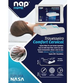 A solução para dores no pescoço, principalmente após uma noite de sono mal dormida, pode ser o seu travesseiro. O travesseiro nasa ortopédico cervical comfort foi desenvolvido em seu formato ergonômico para auxiliar na postura correta na hora de dormir, auxiliando na prevenção de dores na nuca.Graças às duas ondas de suporte, elas proporcionam o alinhamento do pescoço, tornando seu sono tranquilo e relaxante.Na onda mais alta ele proporciona suporte ideal entre o ombro e o pescoço para quem deita de lado, já na onda mais baixa, proporciona conforto e apoio na nuca na cervical para quem deita de barriga para cima.Com isso, esse travesseiro é facilmente adaptado para estas formas de deitar.Seu material de enchimento é feito em viscoelástico densidade d40, a maior densidade da categoria, se acomodando aos formatos da cabeça, ombro e pescoço unindo o formato ortopédico cervical e a tecnologia da espuma desenvolvida pela nasa, proporcionando o equilíbrio ideal entre suporte ergonômico e conforto.O seu enchimento possui ainda tratamento antimicrobial que age eliminando a presença de ácaros, fungos e bactérias sendo totalmente hipoalergênico.Sua capa é feita em tecido super plush atoalhado que enaltece o conforto sublime para tornar suas noites ainda mais aconchegantes e auxilia também na proteção, prolongando a vida útil do seu travesseiro.Esta capa também é removível e lavável, com fechamento em zíper, para fácil remoção. Durma melhor, tenha um sono tranquilo e protegido com o travesseiro nasa ortopédico cervical comfort da nap.Características técnicas- dimensão: 48cm x 68cm x 14/12cm- tamanho: largura 48cm x comprimento 68cm x altura 14/12cm- capa: 100% poliéster super plush- enchimento: 100% poliuretano viscoelástico d40- marca: nap / linha: comfortBenefícios e diferenciais- travesseiro nasa 100% viscoelástico- densidade d40: uma das maiores do mercado, trazendo resiliência e conforto- capa super plush atoalhada robusta que proporciona maciez e toque extremamente aconchegante- formato ortopédico: para o melhor apoio da cervical e alinhamento da coluna- não aquece com o calor corporal espuma termossensível - hipoalergênico antiácaros, antifungos e antibacteriano - ajusta ao formato do corpo- capa removível e lavável com zíperInstruções, avisos e cuidados com o produto: não lavar, não branquear, não expor ao sol. Recomenda-se uso de capa protetora