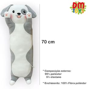 A coleção Amigos do Coração é tão fofa que você vai querer todos Essa pelúcia de cachorro é super fofinha e linda. Ele é ótimo para abraçar, super fofo, e não causa alergia. O seu filho nunca vai querer soltarCaracterísticas:- Material: Externo: 95% Poliéster e 5% elastano. Enchimento: 100% Fibra de poliéster;- Dimensões LxAxC : 17cm x 17cm x 70cm;Especificações:- Marca: DM Toys;- Modelo/Referência: DMT6473.
