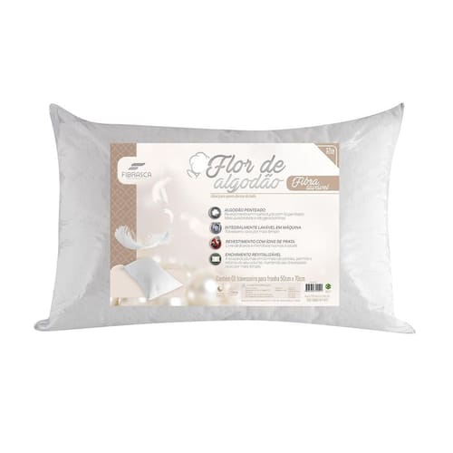 Conforto, saúde e higiene são importantes para uma boa noite de sono não é mesmo O travesseiro Flor de Algodão Fibra lavável em máquina possui diferenciais que vão tornar suas noites ainda mais aconchegantes Desenvolvido com a tecnologia de fibras em formato de pérolas no seu enchimento, sua composição e formato torna ele macio e confortável como a resiliência de uma pluma, e beneficia o processo de lavagem que torna ele integralmente lavável em máquina, sem embolar, revigorando o volume do travesseiro ao secar e não rasgando seu enchimento, pois já é totalmente livre entre suas perolas. Este modelo conta ainda com a capa em malha dupla com detalhes em jacquard, tecido que é utilizado nos colchões mais nobres do mercado, proporcionando extra conforto Seu revestimento conta também a nanotecnologia dos íons de prata, tratamento o qual age através da oxidação da prata, eliminando a presença de ácaros, fungos e bactérias, protegendo a saúde do seu sono Deixe seu travesseiro regularmente limpo e higienizado, sem perder o conforto, experimente o Flor de algodão fibra lavável e tenha noites com mais saúde, proteção e com cheirinho de novo. Marca: Não Informado