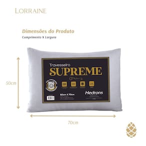 DescriçãoTravesseiro Hedrons SupremeO Travesseiro SUPREME Hedrons é um excelente travesseiro que contém composição especial de fibras, para proporcionar um travesseiro de suporte firme, ideal para quem dorme de lado.Um travesseiro de qualidade superior, com fibras extra macias e capa em tecido diferenciado, com trama mais fechada no clássico PIQUET de visual nobre.Não Alérgico, Fácil manutenção, pode ser lavado na máquina. CONTEÚDO DA EMBALAGEM:- 01 Unidade de Travesseiro SUPREME Hedrons Têxtil- Medida: 50x70 cm ESPECIFICAÇÕES TÉCNICAS:- Material: Enchimento 100% Poliéster- Marca: Hedrons Têxtil- Linha: SUPREME COMPOSIÇÃO:Capa: Tecido em delicados relevos de inspiração piquet em 100% poliésterTecido: (56% algodão e 44% poliéster) e enchimento (100% fibra de poliéster)Cor: Branco