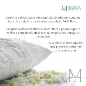 Com mais de 30 anos de experiência, a MADRIGAL ENXOVAIS é uma marca confiável que se preocupa em levar conforto e qualidade para a sua casa. Compre o Travesseiro Látex Natural Flocos Latexfoam Basic Baixo 13Cm e transforme suas noites de sono em momentos de descanso e relaxamento. Marca: Latexfoam