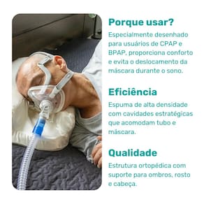 travesseiro cpap, travesseiro para apneia do sono, travesseiro para máscara cpap, travesseiro bpap, suporte máscara cpap, travesseiro ortopédico cpap, travesseiro com cavidade lateral cpap, almofada cpap apneia