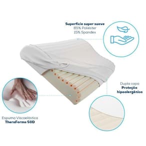 Travesseiro para pescoço Theracurve TheraMart COR BRANCO Length 40 Elimina o e reduz o desconfortoAlivie a tensão em sua cabeça e pescoço após um dia cansativo. O travesseiro TheraCurve permite que toda a sua região cervical receba um suporte confortável. Adaptando-se ao formato das suas costas e pescoço graças a um design contour, TheraCurve respeita sua autonomia e permite que você descanse de forma correta. Libere todo o e garanta um melhor descansoSabia que tem como prevenir dores nas costasNão se preocupe mais com a posição que escolher para dormir Alinhar sua coluna corretamente irá minimizar suas dores nas costas e a rigidez do pescoço. Theracurve ajuda a manter a coluna em uma posição neutra, aliviando a tensão muscular nas costas e ombros.Dormir vai ser o momento favorito do seu diaAproveite uma textura suave e macia em sua pele. A espuma de TheraCurve é composta por uma fórmula dobrável, que se transforma no travesseiro ideal para dormir. O design contribui para que o travesseiro esteja sempre arejado e livre de umidade, sem importar a época do ano ou a temperatura. Além disso, conta com uma capa hipoalergênica extraível e lavável à máquina.Travesseiro para pescoço Theracurve TheraMart TM210 O que é o design contour que tanto falamÉ um formato de travesseiro ergonômico com uma curvatura em sua superfície, tendo uma zona mais baixa ao centro. Com isso, adapta-se à curvatura natural que existe entre o seu pescoço e ombros, mantendo sua coluna vertebral alinhada. Assim, permite que o suporte na região cervical seja completo, evitando a tensão dos músculos do pescoço e ombros. Theracurve prioriza o relaxamento total durante o seu descanso. Viva o melhor sono possível com TheraCurveDimensao do produto : 53,5x40x11,5 cmPeso :1,54kgPreechimento 100% espuma viscoelástico Revestimento interno 100% poliéster Revestimento externo 85% poliéster 15% spandex Marca: Não Informado