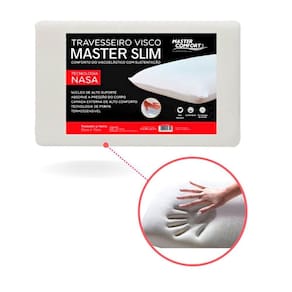 Travesseiro Super Conforto Nasa Noites de Sono Incríveis O Travesseiro Master Viscoelástico possui uma tecnologia desenvolvida pela Nasa e é ideal para quem busca conforto e qualidade. Revestido com 100% de poliéster e espuma de poliuretano. Deixando o momento de dormir tranquilo e revigorante, levando bem-estar para suas noites de sono.