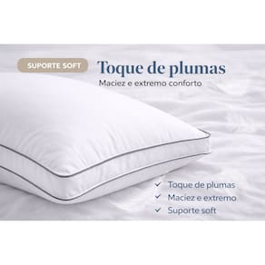 Toque de plumas ultra macio: sensação aconchegante que envolve o rosto, promovendo relaxamento imediato ao deitar.