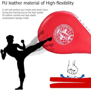 Este objetivo é por fanáticos de Taekwondo (ou outras artes marciais) para praticar patadas baixas e altas. Todo el cuerpo es duradero y flexible.Diseño humanizado: el diseño de cordón de muñeca evita que el karate patee el objetivo de caer, cuando pateas en esta almohadilla, la transmisión de tu fuerza hará que produzca un sonido fuerte y llamativo que puede ayudarte medir a la eficiencia y precisión de tus huerza elgas también te hará más seguro.Doble: las paletas están hechas de esponja de compressión elástica alta que la hacen doble, una mejor opción como regalo: es un mejor regalo para tus hijos, marido, nieto a los que les gustan los deportes.Características: - 100% marca nova- Peso: 310g- Tamanho: 14,8 “(L) x 8' (W) (38,2x20 cm) - Cor: Vermelho- Material: exterior de couro PU e esponja de compressão elástica de alta qualidade no interior.- Material: pele sintética e esponja elástica de compressão.- Embalagem: 1 peça Taekwondo Kick Pad Target.- Com som de golpe plateado enquanto patea.- Aplicável na prática de barco de Taekwondo, artes marciais, etc.- Con correa para la muñeca para evitar que la almohadilla se caiga.