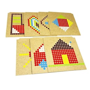 O treino cerebral trabalha coordenação motora fina no planejamento de ilustrações, discriminação visual, classificação das cores no raciocínio lógico, associação de ideias, percepção tátil e habilidades funcionais. 514 peças. Sendo 08 placas medindo 208 mm x 208 mm x 3 mm com modelos para fazer as figuras, 01 placa de 235 mm x 235 mm x 3 mm com orifícios como gabarito, 505 contas coloridas em plástico: 140 vermelhas, 110 ancas, 60 verdes, 60 marrons, 50 azuis, 60 amarelas e 25 pretas, acondicionadas em uma caixa de madeira medindo 380 mm x 265 mm x 50 mm. Atenção: imagem meramente ilustrativa. Pode ocorrer mudanças no tom da cor para o produto real ou mudanças na embalagem sem aviso prévio por parte do fornecedor/fabricante. Homologação Inmetro: CE-BRI/IQB 006352 52216/18-026