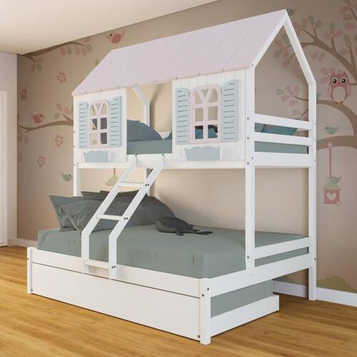 Diferenciais: Auxiliar com Rodízios, Escada com Leve Curvatura, Casinha com fechamento em MDF, Janela e Cachepô.