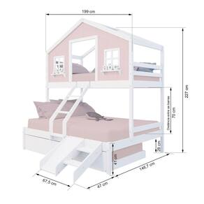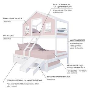 Diferenciais: Auxiliar com Rodízios, Escada com Leve Curvatura, Casinha com fechamento em MDF, Janela e Prateleira Decorativa, Kit Escada/ Escorregador.