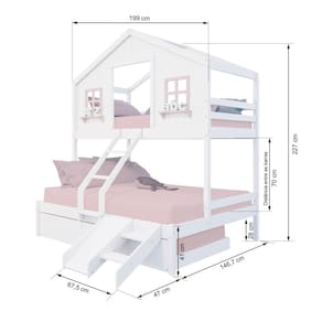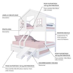 Diferenciais: Auxiliar com Rodízios, Escada com Leve Curvatura, Casinha com fechamento em MDF, Janela e Prateleira Decorativa, Kit Escada/ Escorregador.