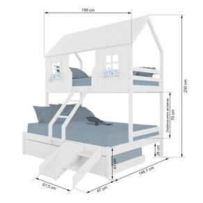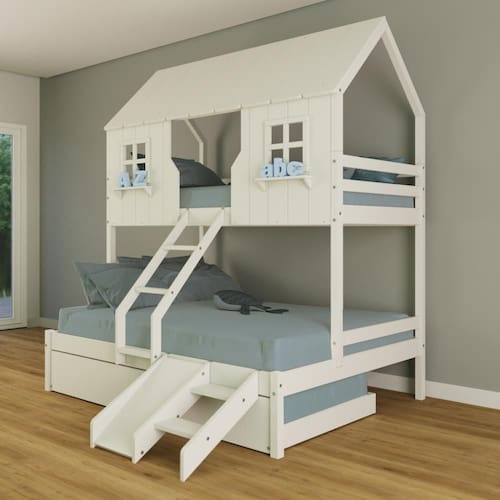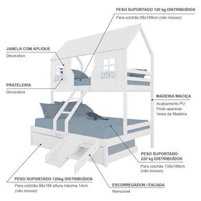 Diferenciais: Auxiliar com Rodízios, Escada com Leve Curvatura, Casinha com fechamento em MDF, Janela e Prateleira Decorativa, Kit Escada/ Escorregador.