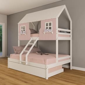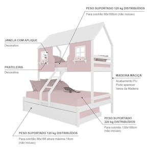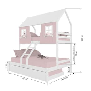 Diferenciais: Auxiliar com Rodízios, Escada com Leve Curvatura, Casinha com fechamento em MDF, Janela e Prateleira Decorativa.
