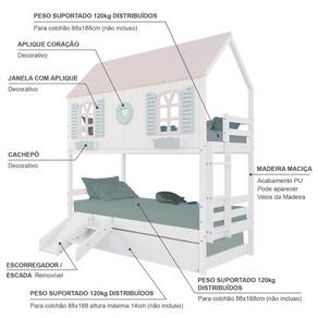 Diferenciais: Auxiliar com Rodízios, Casinha e Telhado com fechamento em MDF, Fechamento Coração, Janela e Cachepô, Kit Escada/Escorregador.
