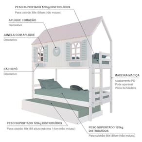 Material Principal: Madeira | Cor: Branco | Rosa | Verde | Necessita Montagem: Sim | Acompanha Colchão: Não | Tipo de Cama: Treliche Solteiro Casinha