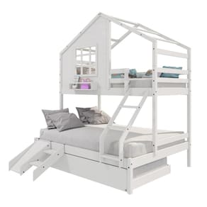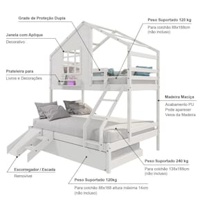 Diferenciais:Auxiliar com 04 Rodízios, Escada com Leve Curvatura, Casinha com fechamento em MDF, Janela e Prateleira para Livros e Decoração, Kit Escada/ Escorregador
