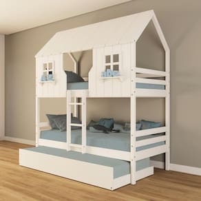 Diferenciais: Escada Fixa, Auxiliar com Rodízios, Casinha e Telhado com fechamento em MDF, Janela e Prateleira Decorativa.