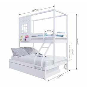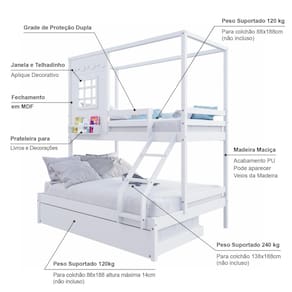 Diferenciais:Auxiliar com 04 Rodízios, Escada com Leve Curvatura, Casinha com fechamento em MDF, Janela e Prateleira para Livros e Decoração, Montagem Reversível (Lado Direito ou Lado Esquerdo)