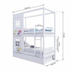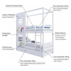 Diferenciais: Escada Fixa, Auxiliar com 4 Rodízios, Casinha com fechamento em MDF, 02 Janelas e Prateleira para Livros e Decoração, Montagem Reversível (Lado Direito ou Lado Esquerdo)
