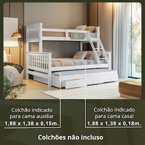 Medidas dos Colchões da Cama Auxiliar de Casal (cm x cm x cm): 188x138x15 (Não Incluso)