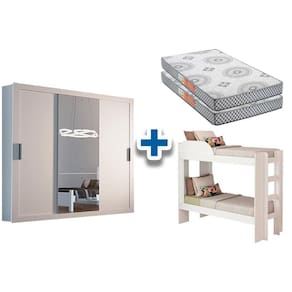 Quarto Infantil/Juvenil com Beliche Flórida e Guarda Roupa 4 Portas 3 Gavetas Flórida 100% MDF Branco