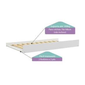 Informação Complementar: 1x Cama Auxiliar Prime II Laca BrancoLargura: 188Altura: 21Peso: 13Profundidade: 85.3Necessita Montagem: Sim1x Grade de Proteção IV em Madeira Maciça BrancoLargura: 110Altura: 32Peso: 3Profundidade: 6.3Necessita Montagem: Sim1x Kit Telhado II com Janelinha para Camas Infantis BrancoLargura: 75Altura: 115Peso: 12Profundidade: 115Necessita Montagem: Sim1x Beliche Teen Play Exclusiva em Madeira Maciça BrancoLargura: 198Altura: 156Peso: 51Profundidade: 104Necessita Montagem: Sim