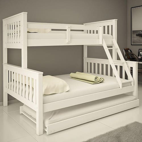 A Treliche casal Prime é ideal para quartos compactos que precisam de móveis que não ocupam muito espaço. Feita para quem deseja acomodar seus amigos e parentes com mais conforto. Conta com 3 camas, camas de solteiro podendo suportar até 120 Kg e a de casal 240 Kg . Para quem for dormir na parte superior da cama, conta com grades de proteção, fornecendo muito mais segurança.