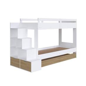 Treliche Infantil com Cama Auxiliar 3 Colchões Branco/Aveiro Oak. O quarto da sua ou suas crianças ficará ainda mais charmoso com a nossa Cama Treliche da Completa Móveis. Com escadas laterais, uma praticidade para a subida e descida do seu pequeno. Em cada degrau, nichos que facilitam e otimizam o espaço. Nestes nichos, podes guardar e organizar vários brinquedos, livros e outros acessórios. Nos últimos dois nichos rentes ao chão, duas gavetas que acompanham o produto e o tornam ainda mais completo! Permite a montagem da escada lateral tanto do lado direito quanto lado esquerdo. Para completar e tornar o produto a verdadeira Treliche, acompanha a cama auxiliar, permitindo que tanto os pais quanto aquele amiguinho possam passar uma noite super legal. Rodízios na cama auxiliar que facilitam sua movimentação. Acompanha Colchões Solteiro 78cm x 188cm Ean: 7909903416143