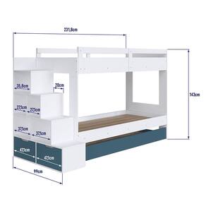 Treliche Infantil com Escada, Nichos e Gavetas BI005 Linha Infanto Branco Azul Secreto Completa Móveis - Branco | Azul