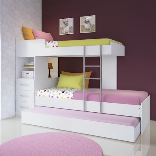 Para tornar o quarto do(a) filho(a) mais descontraído e extremamente funcional a Treliche Plus não pode deixar de ser sua escolha. Extremamente moderna, com design exclusivo, ideal para quarto pequeno. Com 3 camas, sendo uma auxiliar. E ainda para completar esse luxo de quarto completíssimo, temos 3 gavetas e 4 nichos com muito espaço para organizar os objetos. O quarto será o canto favorito da casa!