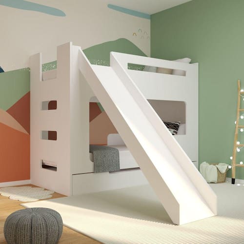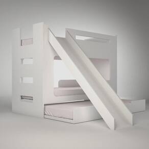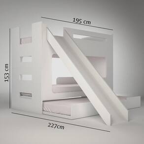 Otimização de espaço, sem deixar de lado o estilo e a personalização. A Linha Lumi surge como uma ótima alternativa para ambientes pequenos. É utilizado em toda a sua estrutura MDF das melhores marcas do país, com espessura de 2,5cm, o que torna o móvel muito mais forte e durável. Possui um design moderno, com as laterais fresadas em chapas inteiriças, tendo lateral, pés e meia guarda em uma só peça. A escada de acesso à cama superior é embutida na peseira, também fresada na própria peça. A cama superior possui grade de proteção reforçada, para maior segurança da criança. Utilizado colchão padrão solteiro (1,88x0,88mt) nas 3 camas. A pintura laca traz o acabamento de alto padrão. Pode ser adquirido nas versões Sem escorregador ou Beliche. Acabamento dos Pés: Laca Acompanha Cabeceira: Não Acompanha Cama Auxiliar: Não Acompanha Colchão: Não Altura do Estrado até o Chão: 13 cm Altura dos Pés: 10 Altura Máxima dos Pés: 10.0000 Ambiente Principal: Quarto Infantil codigo_ean: 7909903311868 Complexidade da Montagem: Média: pode ser montado por mais de uma pessoa e/ou necessite de maior conhecimento para montagem Cor: Branco Cor do Produto: Branco Cor Flex: Não Escala de Brilho: Fosco Extensível: Não Informações Complementares: Pintura atóxica, estrutura reforçada, escadas embutidas na peseira. Itens Inclusos: 1 Beliche, 1 Escorregador, Kit Ferragens e Manual de Montagem Linha ou Coleção: Lumi Manual de Montagem e Instalação: https://product-hub-prd.madeiramadeira.com.br/838581/documents/99d0b6ec-e0f8-4091-947d-7c47c521d69d3157manualbelichelumirev01.pdf Material do Estrado: Madeira Material dos Pés: MDF Material Principal: MDF Montagem Flex: Não Necessita Montagem: Sim Origem do Produto: Nacional Permite a Utilização de Cama Auxiliar: Não Peso: 165 kg Possui Baú: Não Possui Escrivaninha: Não Possui iluminação: Não Possui Pés: 04 Possui Portas: Não Possui Prateleiras: Não Possui Rodízio: Não Recomendações de Uso, Manutenção e Limpeza: Para higienização, utilizar um pano levemente umedecido. Sapatas Niveladoras: Não Sistema de Montagem: Parafusos, Minifix, Cavilhas. Suporta Até (kg): 160 kg Tamanho da Cama: Solteiro Tamanho do Colchão Indicado (L x C): 88cm x 188cm Tipo de Cama: Beliche Tipo de Colchão: Solteiro Tipo de Estrado: Fixo Marca: Timber