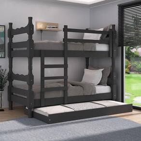 Treliche Madeira Maciça - Vira 2 Camas - Com Colchões Inclusos Porto Multimóveis Cr35108 Preto Preto O Treliche Madeira Maciça - vira 2 Camas - com Colchões Inclusos Porto Multimóveis é um produto que une qualidade e versatilidade para atender às suas necessidades. Produzido 100% em madeira maciça (pinus) proveniente de reflorestamento, este Treliche garante durabilidade e resistência, além de ser uma opção ecologicamente correta. Com barras reforçadas e suportando até 110kg, esse Treliche oferece segurança e conforto para suas noites de sono. Ainda mais versátil, você pode utilizá-lo também como duas camas separadas. Possui dupla furação podendo ser utilizado para colchão de 78 ou 88cm. E não se preocupe: os colchões D23 com tratamento anti-ácaro e anti-alérgico estão inclusos, garantindo proteção à saúde durante seu descanso. As cabeceiras torneadas com espessura de 8,5 x 8,5cm trazem um toque sofisticado ao design do móvel. Invista em qualidade e praticidade para sua casa ou apartamento sem abrir mão do estilo que só essa peça proporciona. Conteúdo da Embalagem: 1 (uma) Treliche 2 (dois) Colchões 88cm 1 (um) Colchão 78cm Kit Ferragem Manual de Montagem