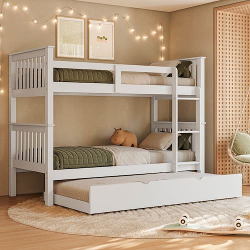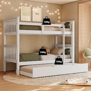 A Beliche em madeira maciça de solteiro + cama auxiliar de solteiro é ideal para quartos compactos que precisam de móveis que não ocupam muito espaço. Feita para quem deseja acomodar seus amigos e parentes com mais conforto. Conta com 3 camas, cada uma podendo suportar até 120 Kg. Para quem for dormir na parte superior da cama, conta com grades de proteção, fornecendo muito mais segurança. A Beliche em madeira maciça de solteiro + cama auxiliar de solteiro possibilita um aproveitamento inteligente do espaço disponível em sua casa, sem deixar de agregar beleza, praticidade e conforto em seu dia a dia. Além disso, o móvel acompanha Cama Auxiliar, o que otimiza ainda mais o espaço do ambiente.