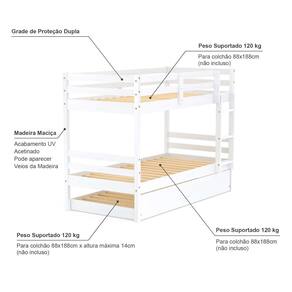 Medidas do Colchão da Cama Auxiliar (cm x cm): 88x188 e Altura Máxima 14 (Não Incluso)