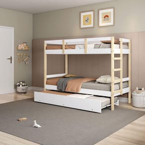 O Treliche Solteiro Soft Casatema foi desenvolvido para otimizar a utilização do espaço do quarto, com conforto e segurança. Estrutura em madeira e MDF, que permite suportar até 90kg de peso distribuídos uniformemente. Pintura predominante em poliéster (sistema de pintura UV), proporcionando proteção e acabamento no produto, além de ser um sistema de pintura atóxico. Os colchões indicados para uso são o padrão solteiro tamanho 1,88mx88cm. No momento da montagem, poderá ser escolhido o lado direito ou esquerdo para a escada, conforme o ambiente. Acompanha Cabeceira: Sim Acompanha Cama Auxiliar: Não Acompanha Colchão: Não Altura do Estrado até o Chão: 30 cm Ambiente Principal: Quarto codigo_ean: 7909903539248 Complexidade da Montagem: Alta: deve ser montado por um montador especializado Cor: Branco/Natural Cor do Produto: Branco/Natural Escala de Brilho: Semi-Brilho Extensível: Não Informações Complementares: Capacidade de peso para kg informados distribuídos uniformemente. Itens Inclusos: 1 Treliche, Kit Ferragens, Manual de Montagem Linha ou Coleção: Casatema Manual de Montagem e Instalação: https://product-hub-prd.madeiramadeira.com.br/885597/documents/a0c3a536-5af2-44db-9f3c-2ec63520e834hesolteirosoftcamaauxiliar.pdf Material Principal: MDF modular: Não Montagem Flex: No momento da montagem a escada poderá ser colocada no lado esquerdo ou direito, conforme o ambiente. Necessita Montagem: Sim Origem do Produto: Nacional Permite a Utilização de Cama Auxiliar: Não Peso: 85 kg Possui Baú: Não Possui Escrivaninha: Não Possui Gavetas: Não Possui iluminação: Não Possui Pés: Não Possui Portas: Não Possui Prateleiras: Não Recomendações de Uso, Manutenção e Limpeza: Na limpeza não deverão ser utilizados produtos químicos. Limpar com pano levemente umedecido e depois pano seco. Sistema de Montagem: Parafusos, Cavilhas Suporta Até (kg): 90 kg Tamanho da Cama: Solteiro Tamanho do Colchão Indicado (L x C): 1,88x0,88 Tipo de Cama: Treliche Tipo de Colchão: Solteiro Tipo de Estrado: Fixo