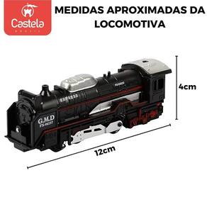 Dimensões Aproximadas da Locomotiva: 04cm x 03cm x 12cm Altura x Largura x Comprimento/Profundidade .