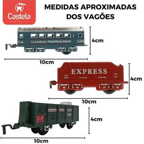 Trem 3 Vagões Locomotiva Com Pista Luz Brinquedo - Castela DESCRIÇÃO DO PRODUTO