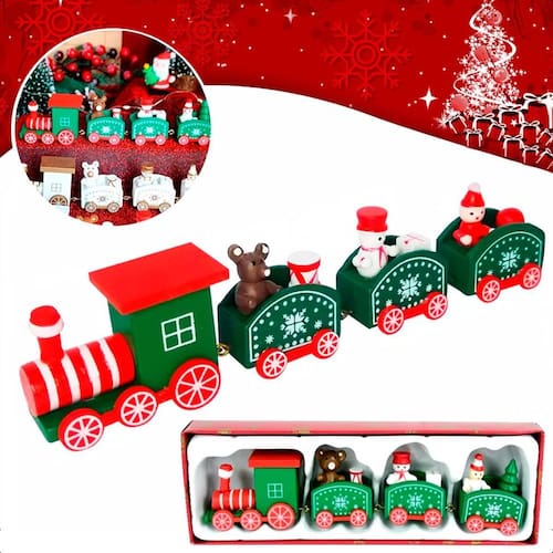 Trem Brinquedo Decoração Natalina Trenzinho De Madeira-Verde