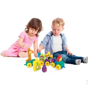 Com os blocos de montar Trem Puxa Zoo da Dismat a diversão e o aprendizados andam juntos. O mundo da Blocolândia esta de portas abertas para as crianças. Um brinquedo super legal e super bonitinho que vai levar as crianças para uma viagem de trem com animais do zoológico. Com 33 peças para encaixar que estimula a inteligência e criatividade das crianças de forma divertida. Estimula também o planejamento e a organização. Melhora as habilidades motoras, foco e concentraçãoIndicado pra crianças a partir de 18 meses.Nesse lindo kit já inclui 7 pinos simples, 1 pino duplo, 5 pinos arredondados, 5 pinos angulares, 3 vagões e 12 rodas. Acompanha também uma cartela de adesivos. Solte toda a imaginação e monte o que quiser com esses maravilhosos blocos de montar.