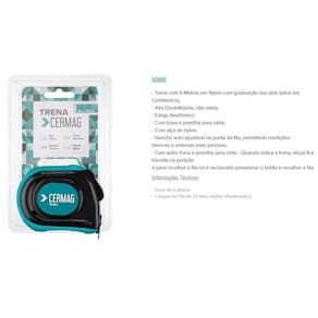 A trena fita nylon dupla marcação botão auto trava 05 metros é o item perfeito para suas necessidades de medição. Com alta durabilidade e resistência à oxidação, esta trena proporciona uma precisão excepcional e é perfeita para ou doméstico. Com uma fita em nylon de alta qualidade, esta trena possui graduação nos dois lados em centímetros, facilitando a leitura e tornando as medições mais precisas. Além disso, possui uma prática trava e presilha para cinto, permitindo que você a mantenha sempre à mão durante o trabalho. O estojo anatômico desta trena proporciona conforto e praticidade no manuseio, evitando que ela escorregue das mãos durante o uso. Além disso, conta com uma alça de nylon para transporte fácil e seguro. Uma das características mais impressionantes desta trena é o gancho auto-ajustável na ponta da fita, que permite medições tanto internas quanto externas com extrema precisão. Isso é especialmente útil em projetos de carpintaria, marcenaria, costura e muito mais. Com a função de auto-trava, quando você estica a trena, ela já fica travada na posição, facilitando a leitura das medidas. E para recolher a fita, basta pressionar o botão e recolhê-la de forma rápida e prática. Além de todas essas características técnicas impressionantes, esta trena também se destaca pelo seu design moderno e elegante. Seu acabamento impecável e cores vibrantes a tornam um item indispensável em sua caixa de ferramentas. A marca deste produto é amplamente reconhecida no mercado por sua qualidade e confiabilidade. Com anos de experiência e dedicação, eles se tornaram líderes no segmento de ferramentas de medição, garantindo produtos duráveis e de alto desempenho. 1. Qual o comprimento da fita desta trena?