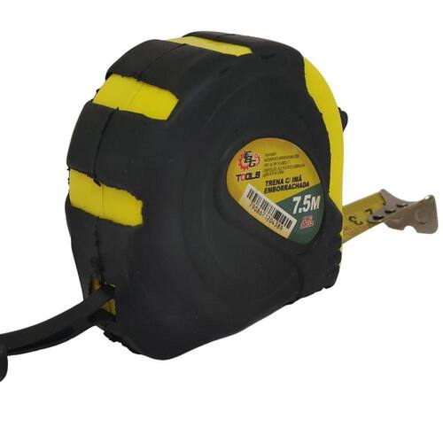 Detalhes técnicos Comprimento da trena: 7,5 m Graduação da trena: mm/pol Largura da fita: 25 mm Material da fita: aço Acabamento da fita da trena: brilhante Revestimento da fita da trena: pintado Classe de precisão: classe ii Material da caixa da trena: abs de alta resistência Sistema de trava da trena: botão