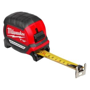A Trena 8mts Ergonômica Magnética 48-22-0326 Milwaukee oferece alcance de até 15 pés e possui um ímã que facilita a fixação em parafusos.