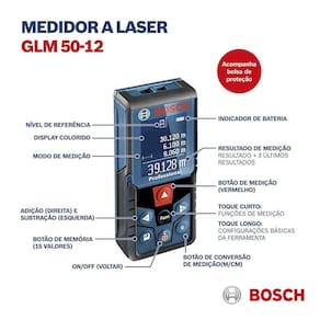 Trena a laser bosch glm50-12 leitura até 50 metros + acess Medidor a laser glm 50-12 bosch professional 50m