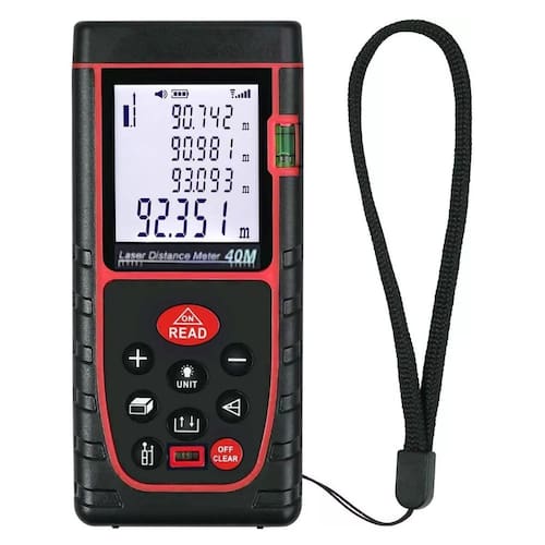Seu design ergonômico com botões emborrachados oferece conforto e segurança, permitindo que você trabalhe com firmeza, mesmo em longas jornadas de uso contínuo. Além disso, suas múltiplas funções, como medição de áreas, volumes e até cálculos usando o Teorema de Pitágoras, fazem deste medidor uma ferramenta completa e indispensável.