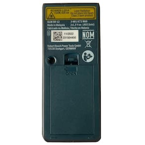 marca: bosch modelo: glm 50-12 díodo laser: 635 nm, menor 1 mw classe de laser: 2 cor laser: vermelho precisão de medição: +/- 1,5 mm distância mínima: 0,05 metros distância máxima: 50 metros unidades de medição: metros e em centímetros tempo de medição máxima: 4 segundos dispositivo de desconexão automática: 5 min memória: até 15 medições alimentação: 02 pilhas tipo aaa de 1,5 v peso aprox. 100 gramas largura: 45 mm altura: 106 mm profundidade: 24 mm made in malaysia rosca do tripé: 1/4 a mesma de tripés de máquinas fotográficas proteção ip54 protegido contra poeira e contra respingos de água modelo detalhado: 0601072rg0 código bosch: 0 601 072 rg0 sku: 012872 ean: 4059952651859