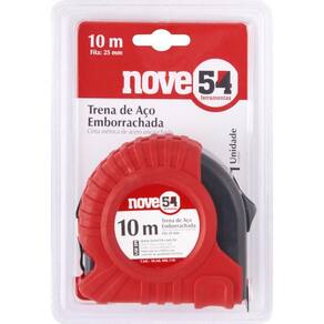 Trena Aço 10mx25mm Curta Emborrachado - Nove54 Conteúdo da embalagem 1 Trena curta Aplicações e dicas de uso Indicada para medições em geral Destaques e diferenciais Possui estojo anatômico em ABS de alta resistência com revestimento em borracha termoplástica, proporcionando melhor pega e maior conforto durante o manuseio. Fita em aço com graduação em milímetros e polegadas, além de pintura brilhante e numeração contínua, agilizando a leitura e proporcionando maior precisão. Possui trava da fita que facilita a leitura, alça em nylon e presilha para cinto, auxiliando no transporte e segurança durante o uso. Conta ainda com gancho ajustável na ponta da fita, permitindo medições internas e externas mais precisas. DETALHES TÉCNICOS