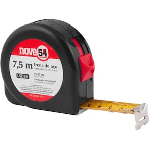 Ref. Fornecedor:3868954075marca:nove54conteúdo da embalagem:1 TrenaDestaques e diferenciais:Fita em aço com pintura brilhante, graduação em milímetros e polegadas, além de numeração contínua, facilitando a leitura e proporcionando maior precisão. Possui botão trava da fita que facilita a leitura e presilha para cinto, auxiliando no transporte e segurança durante o uso. Conta ainda com gancho ajustável na ponta da fita, permitindo medições internas e externas mais precisas.Aplicações e dicas de uso:Indicada para medições em geral Características Técnicas:Comprimento da trena: 7,5 m Largura da fita da trena: 25,0 mm Revestimento da fita da trena: Pintado Acabamento da fita da trena: Brilhante Graduação da trena: mm/pol Material da caixa da trena: ABS de alta resistência Sistema de trava da trena: Botão Marca: Não Informado