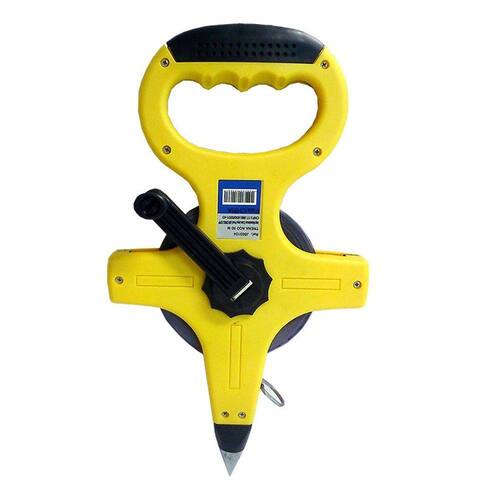 Trena de atletismo oficial fabricada em aço com capacidade para medir até 50 metros de comprimento, ponteira e mecanismo interno em aço galvanizado, graduação em mm/polegadas, usado para medir grandes terrenos de forma simples e precisa, recomendados para competições oficiais. Possui manivela para recolher a fita sem que ela embole ou enrosque e uma empunhadura com pegada ergonômica, facilitando o manuseio e garantindo mais conforto na hora do uso.