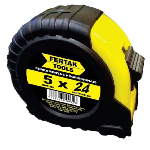 Trena de medição emborrachada 05mx24 mm - fertak - 8032 Trena 5 metros x 24 milímetros fertak tools