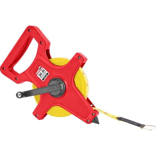 Comprimento da trena: 30 m Largura da fita da trena: 12,5 mm Tipo da caixa da trena longa: Aberta Material da fita da trena longa: Fibra de vidro Acabamento da fita da trena: Pintura fosca Classe de precisão : Classe III